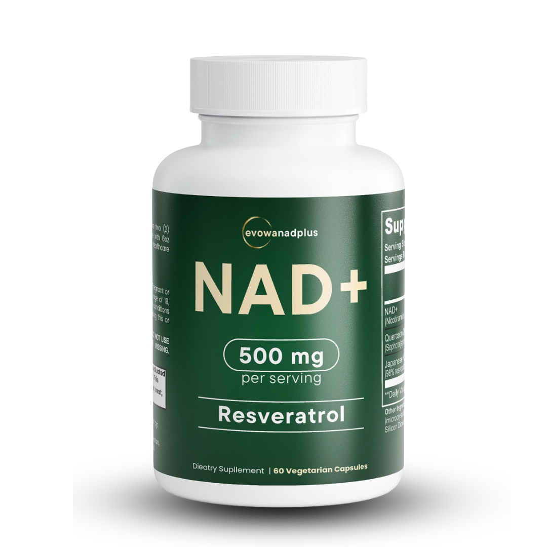 Each serving provides 500mg of NAD+ (Nicotinamide Adenine Dinucleotide) plus Resveratrol and Quercetin — a plant-based formula designed to support cellular energy, healthy aging, and overall vitality.